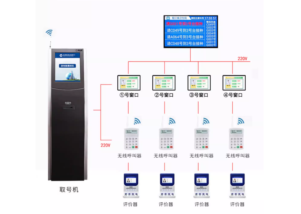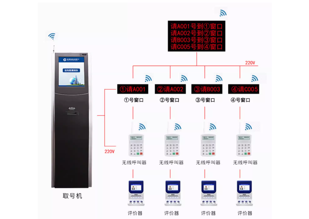 ③維護(hù)簡單:沒有分線盒、通信控制器、中繼器,沒有485總線拉死情況,取號機、叫號器,窗口屏都是一個獨立無線設(shè)備,不存在排查線路上的問題而煩惱,節(jié)省時間,減少維護(hù)成本