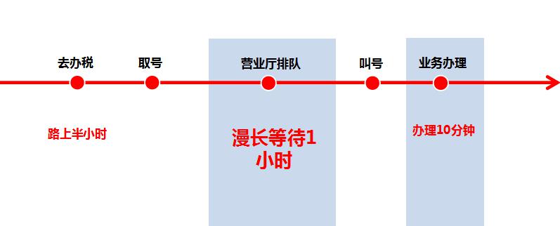 ③、去辦事大廳辦理業務,花半小時到達辦事大廳,取號,再等30-60分鐘甚至兩個小時時間,最后花10-15分鐘甚至更少時間用于實際辦業務;④、還有的人取了號,出去辦事,估摸著時間折返回辦事大廳,時間的拿捏當然是很困難的,因為你無法準確的估算每個人辦業務花費的時間,人數越多,這種時間越難把握。